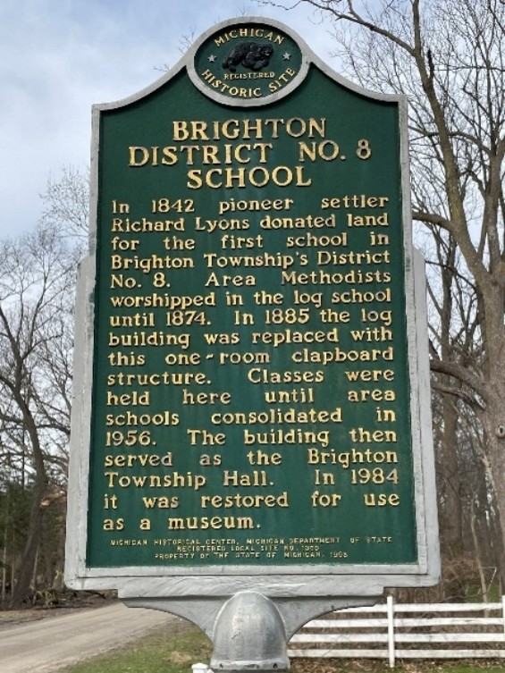 The Brighton Area Historical Society (BAHS) was formed in 1981. We are based in the historic Lyon School building, a local landmark that we are very proud of. In 1842, Brighton pioneer settler Richard Lyon donated land for the first school in Brighton Township’s District No. 8 Area. The original school house on the site was a log building. In addition to classes, Methodists worshipped in the log school until 1874.